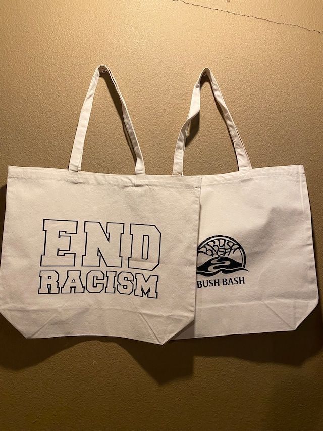 それぞれの日々の生活の中での意思表示に。 片面がEND RACISM、片面がBUSHBASHロゴとなっております ボディーはUnited Athle厚手のキャンバス地のトートとなります United Athle 8.3 oz tote cotton 100% 横幅33cm 縦幅40cm マチ 15cm